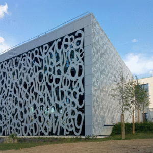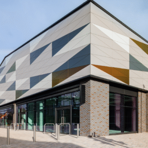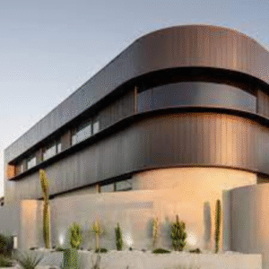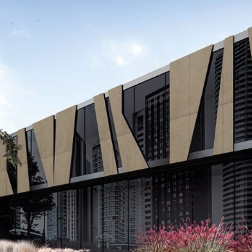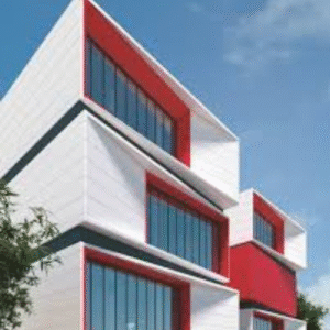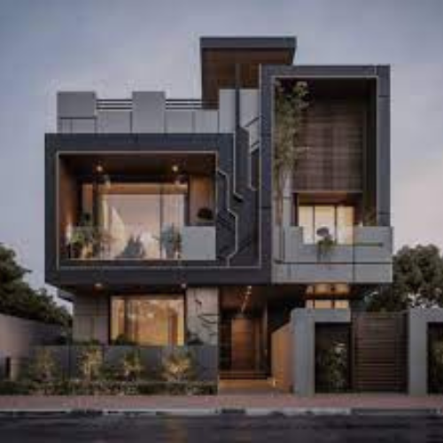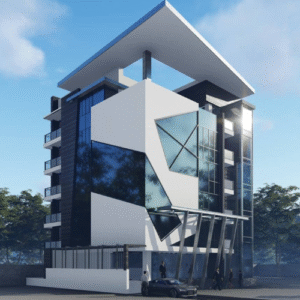 A detailed view of the building’s front façade, showcasing design, structure, and finishing details.